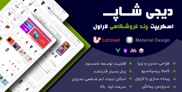 اسکریپت دیجی شاپ یک اسکریپت چند فروشگاهی است که به شما کمک می کند کسب و کار اینترنتی خودتان را در سریع ترین زمان پیاده سازی کنید. اسکریپت دیجی شاپ یک سامانه فروشگاهی اینترنتی است که توسط آخرین ورژن فریم ورک محبوب لاراول ایجاد شده ، در این اسکریپت هیچ گونه محدودیت در کدها اعمال نشده است و در صورت تمایل میتوانید در هر کجا که مایل بودید درخواست تغییر یا سفارشی سازی ایجاد کنید.